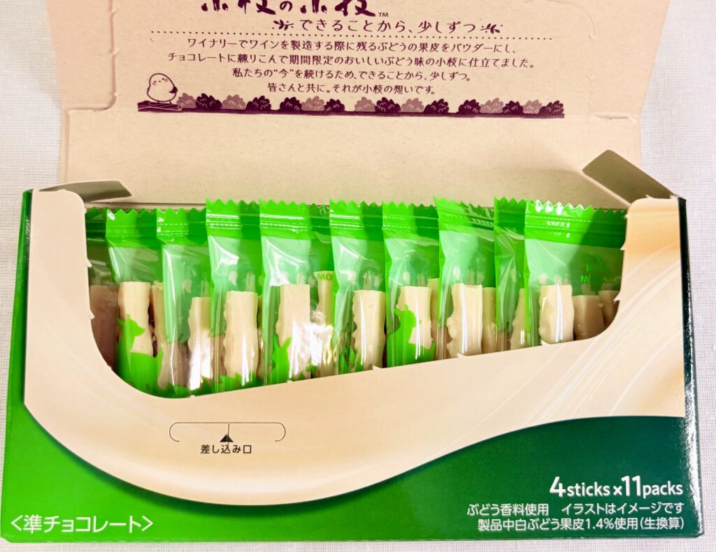 今回は、ワイン製造時に残る ブドウの果皮を使用した「小枝」の期間限定の新商品*